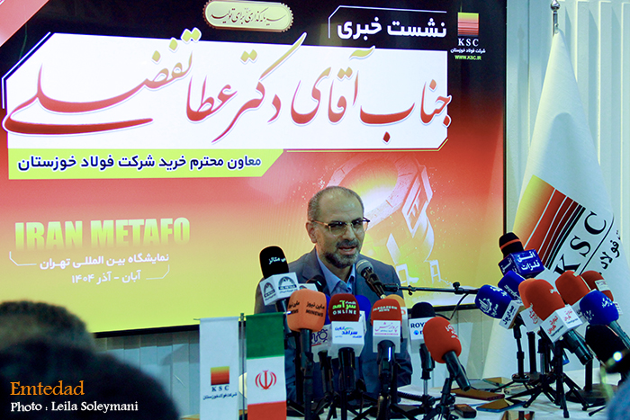 نشست های خبری در حاشیه دومین روز از برگزاری بیستویکمین دوره نمایشگاه ایرانمتافو با حضور عطا تفضلی معاون خرید و رضا وکیلی معاون فروش و بازاریابی شرکت فولاد خوزستان درتاریخ 30 آبان 1404 در...